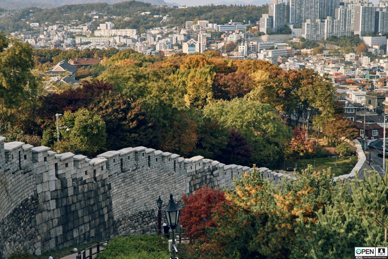 The Seoul City Wall was originally built in 1396, surrounding Seoul (then known as Hanyang) during the Joseon Dynasty (1392-1897). The wall stretches for 18.6km along the ranges of Bugaksan Mountain, Naksan Mountain, Namsan Mountain, and Inwangsan Mountain. The wall stands at average heights of 7 - 8 m high. Along the Seoul City Wall, there once stood eight gates that were originally built between 1396-1398, but only six remain standing. The North, South, East, and West gates of the wall are known as the “Four Great Gates” (Sukjeongmun, Heunginjimun, Sungnyemun, Dongeuimun), while the Northwest, Northeast, Southwest, and Southwest gates are known as the “Four Minor Gates” (Changuimun, Hyehwamun, Gwanghuimun, Soeuimun).