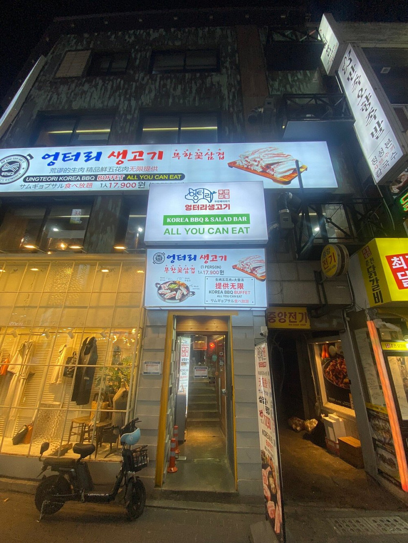 Head over to Ungteori, a local favorite in Myeongdong known for its unbeatable value and generous portions. Popular among Seoul residents, this laid-back spot offers an all-you-can-eat BBQ experience featuring delicious cuts of pork belly and other meats.